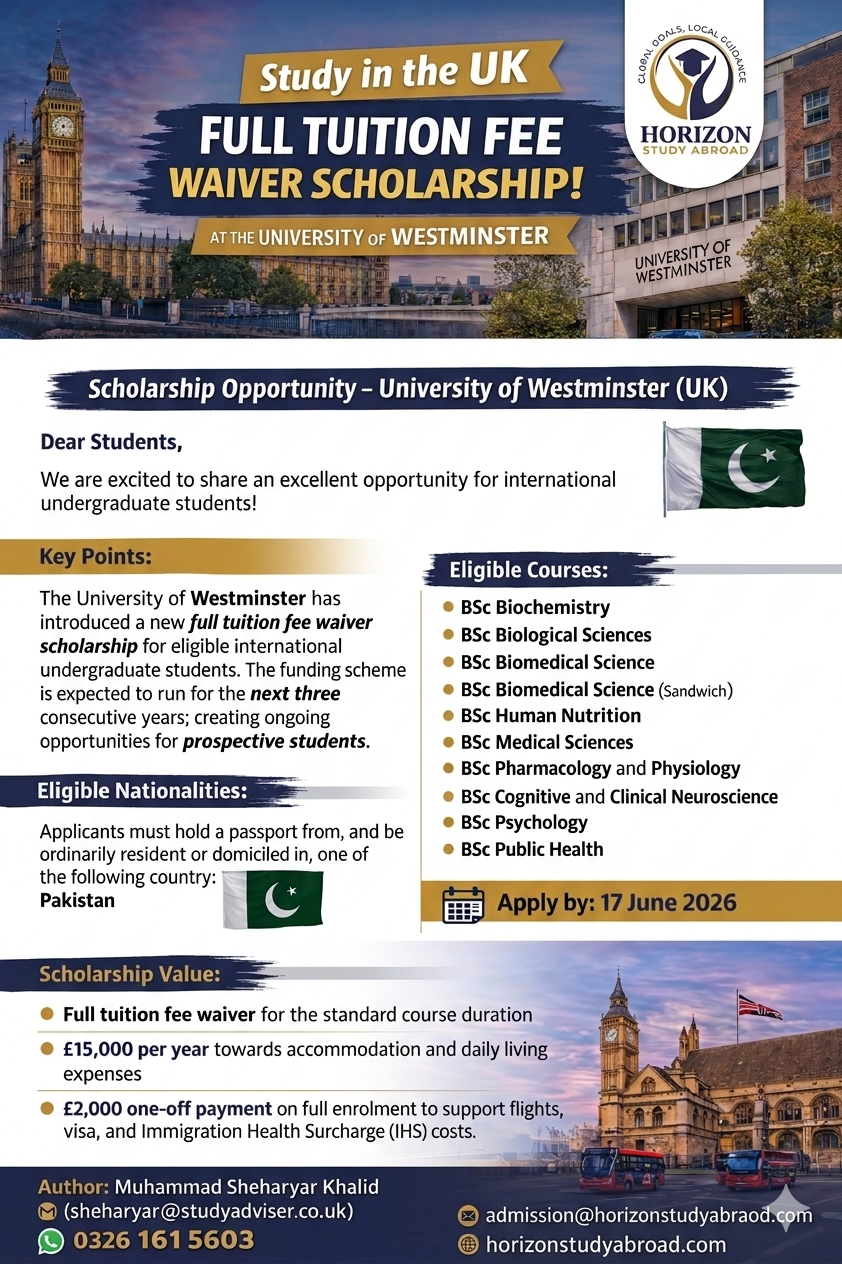 Scholarship Opportunity – University of Westminster (UK) Dear Students, We...