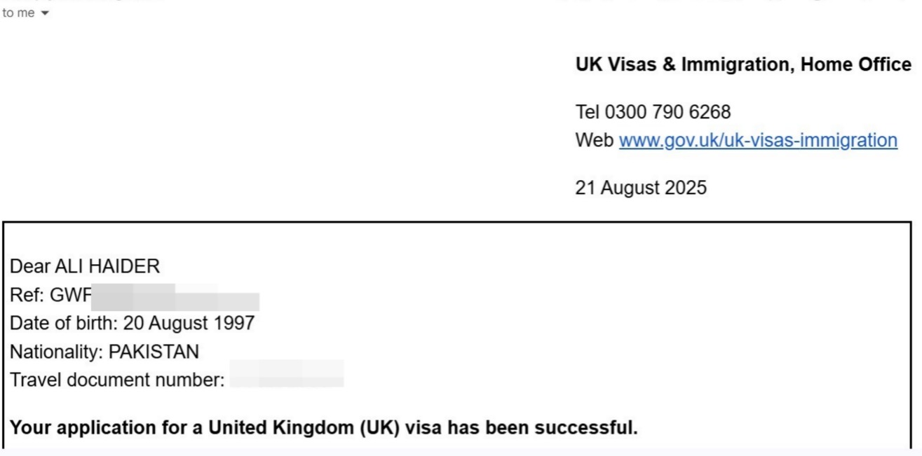“I am satisfied with team, they are higly cooperative. Bcz of there team hardwork I am here in UK right now.”